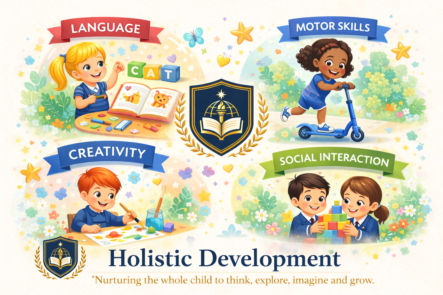 Our program blends global best practices with age-appropriate learning experiences that balance play, exploration, and structured skill building.