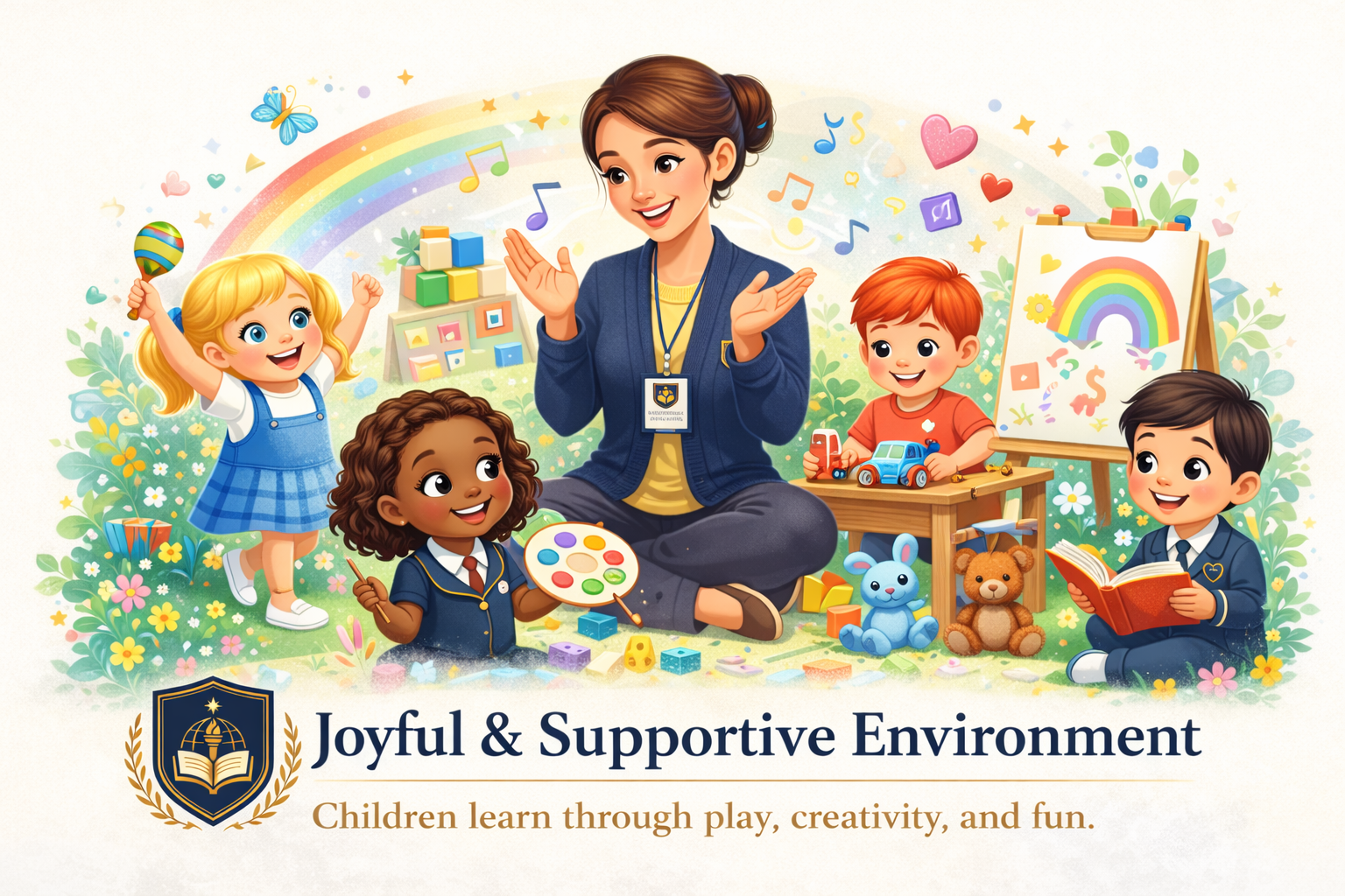 Structured learning through creative exploration, songs, storytelling, and interactive activities.
